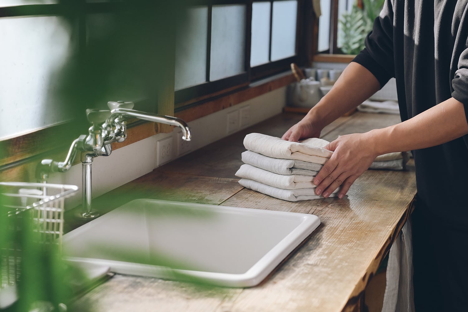 洗濯機でのお洗濯が可能ですが、柔軟剤・漂白剤の使用はお控えください。 リネン本来の吸水性を損なうことなく、使い込むほどに生地はより柔らかく、白色のものはより清らかな白へと育っていきます。