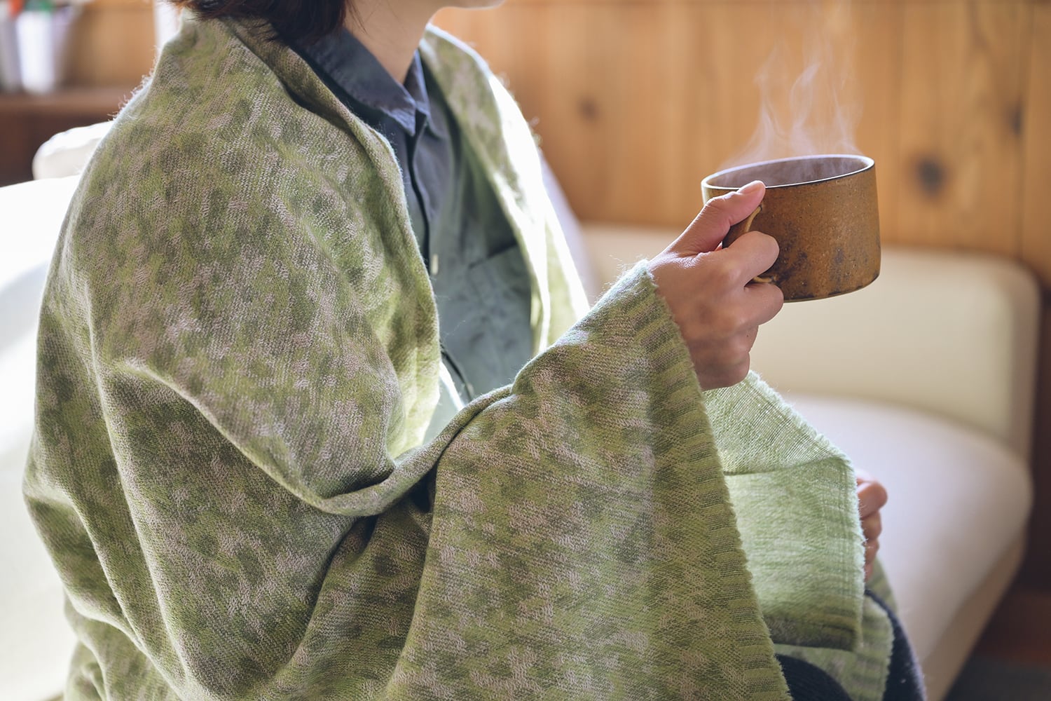 オーガニックコットン × ウールの天然素材 環境にも人にも優しいオーガニックコットンと、保温性に優れたウールの織物。天然繊維のみで作られているため、乾燥する季節に気になる静電気が発生しにくいのも特徴です。