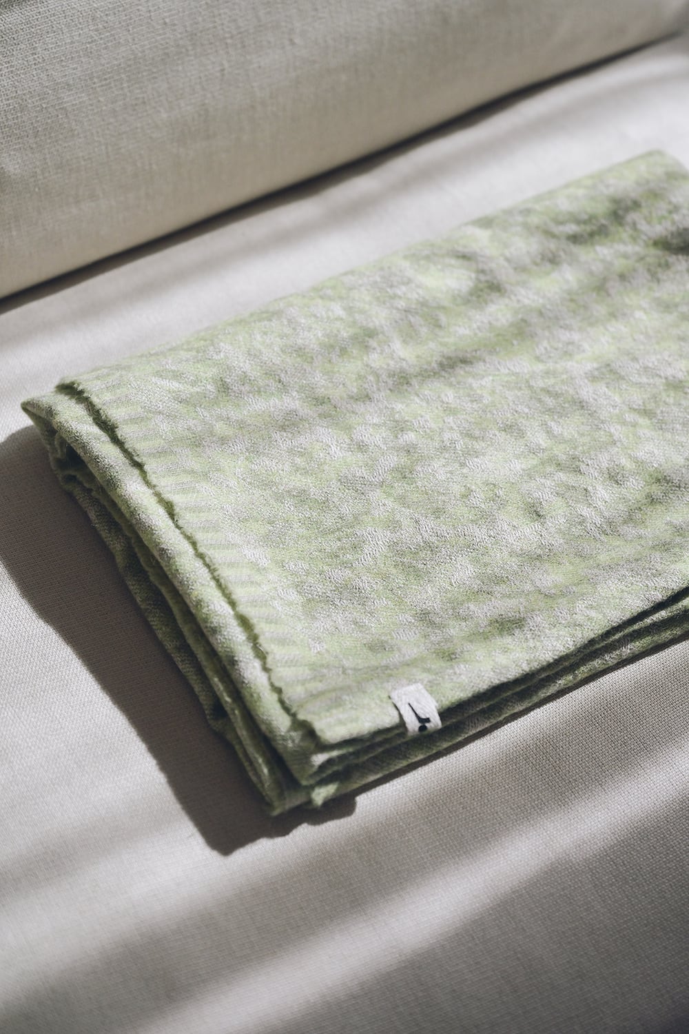 前田源商店(made in Fujiyoshida) 1000年続く織物産地、山梨県富士吉田市。その地で唯一オーガニックコットンにこだわり続ける「前田源商店」。100年以上の歴史に裏打ちされた技術と、新しい特許技術の融合により、この繊細で柔らかなブランケットは生まれました。