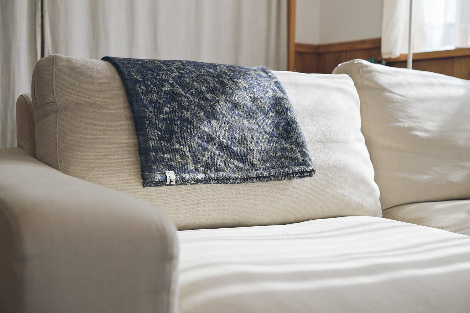 L(大判)| 155cm × 135cm ベッドのスローやソファカバーとしても活躍する大判サイズ。包み込まれるような安心感がありながら、通気性が良いため、季節を問わず快適にお使いいただけます。
